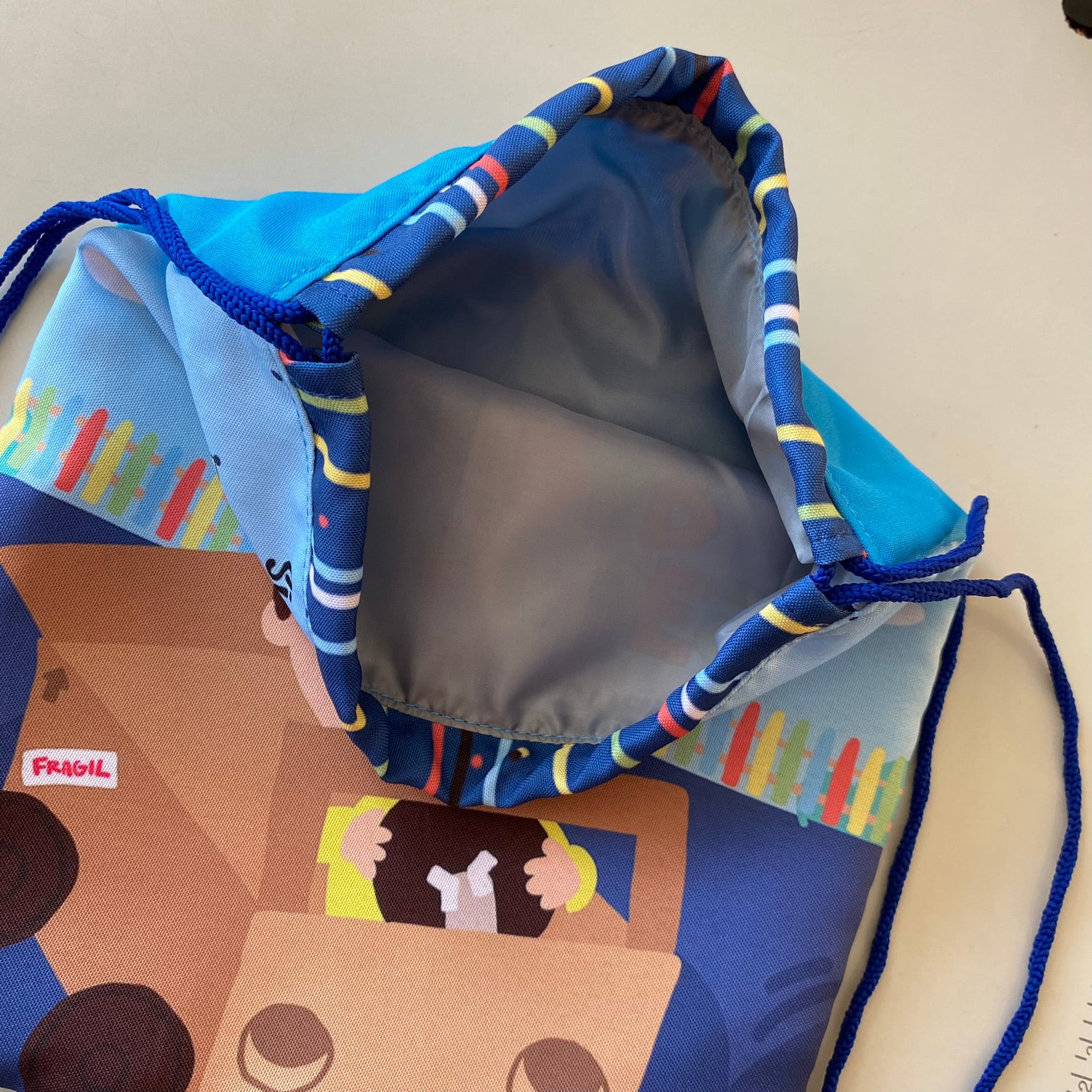 Confeccionado en genero, o tela bistrech este morralito tiene su diseño estampado por medio de la tecnica de sublimacion, lo que lo hace resistente a varios lavados. Por la parte de atras tiene tela unicolor.